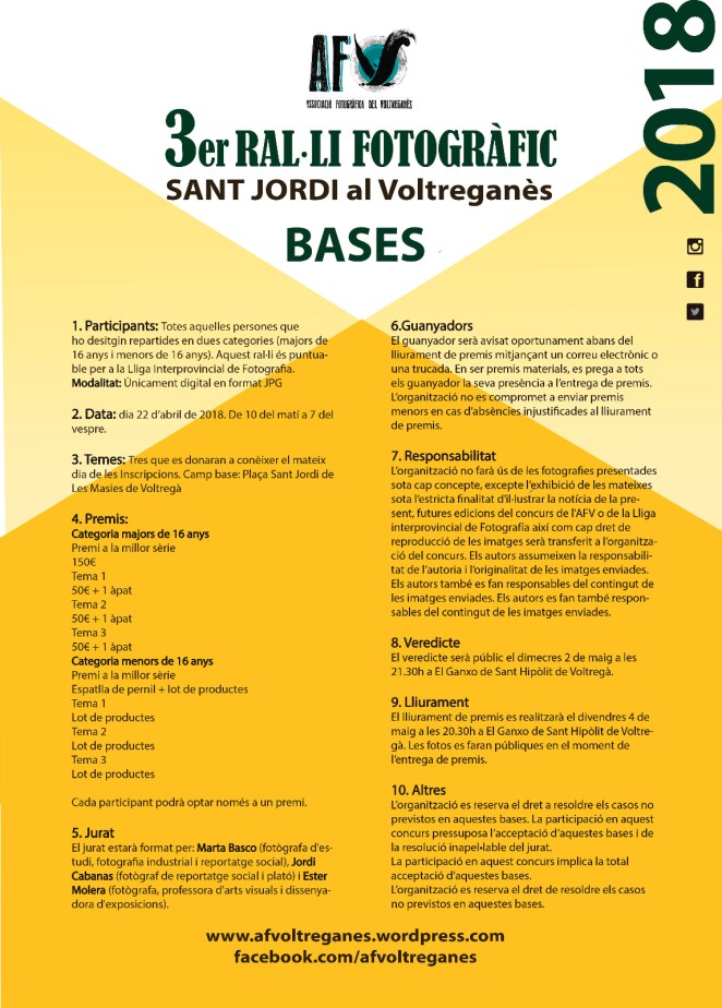 3r Ral·li Fotogràfic de Sant Jordi al Voltreganès 3r Ral·li Fotogràfic de Sant Jordi al Voltreganès Puntuable per a la Lliga Interprovincial de Fotografia www.llif.cat